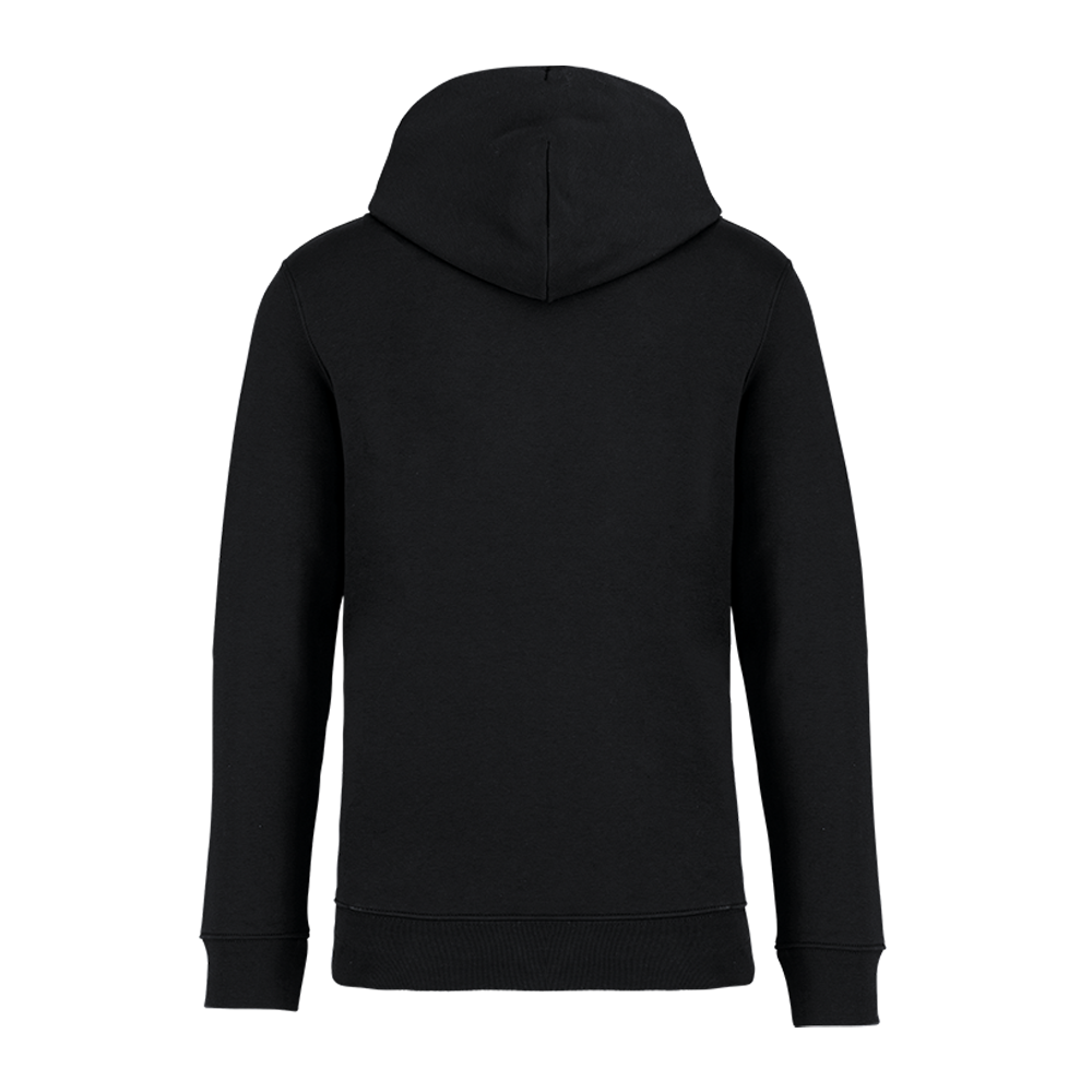 Dieser schwarze Hoodie ist ein absolutes Must-Have für jeden Kleiderschrank. Er besteht aus zertifizierter Bio-Baumwolle sowie recyceltem Polyester und ist somit nicht nur bequem, sondern auch umweltfreundlich und nachhaltig hergestellt. Die praktische Kängurutasche bietet genug Platz für Handy, Geldbeutel oder andere Utensilien.